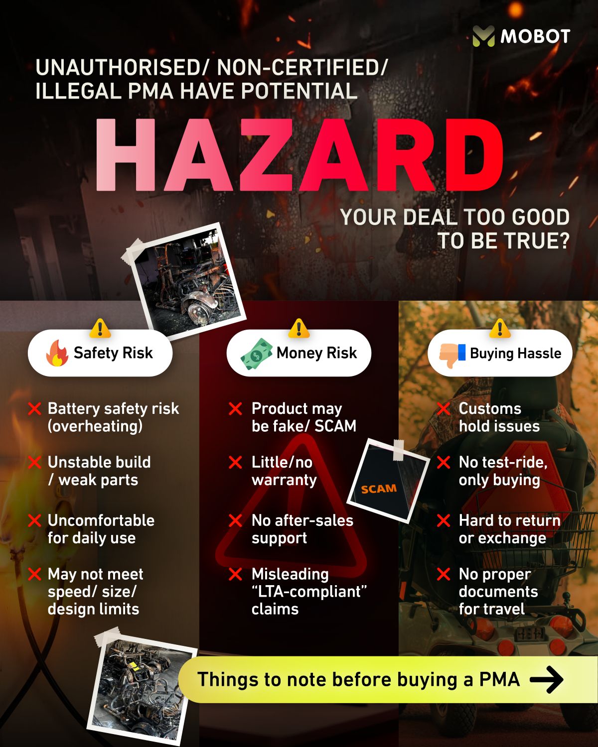 Illegal or unsafe personal mobility devices can now be seized by LTA or cause fires — leaving you with nothing.