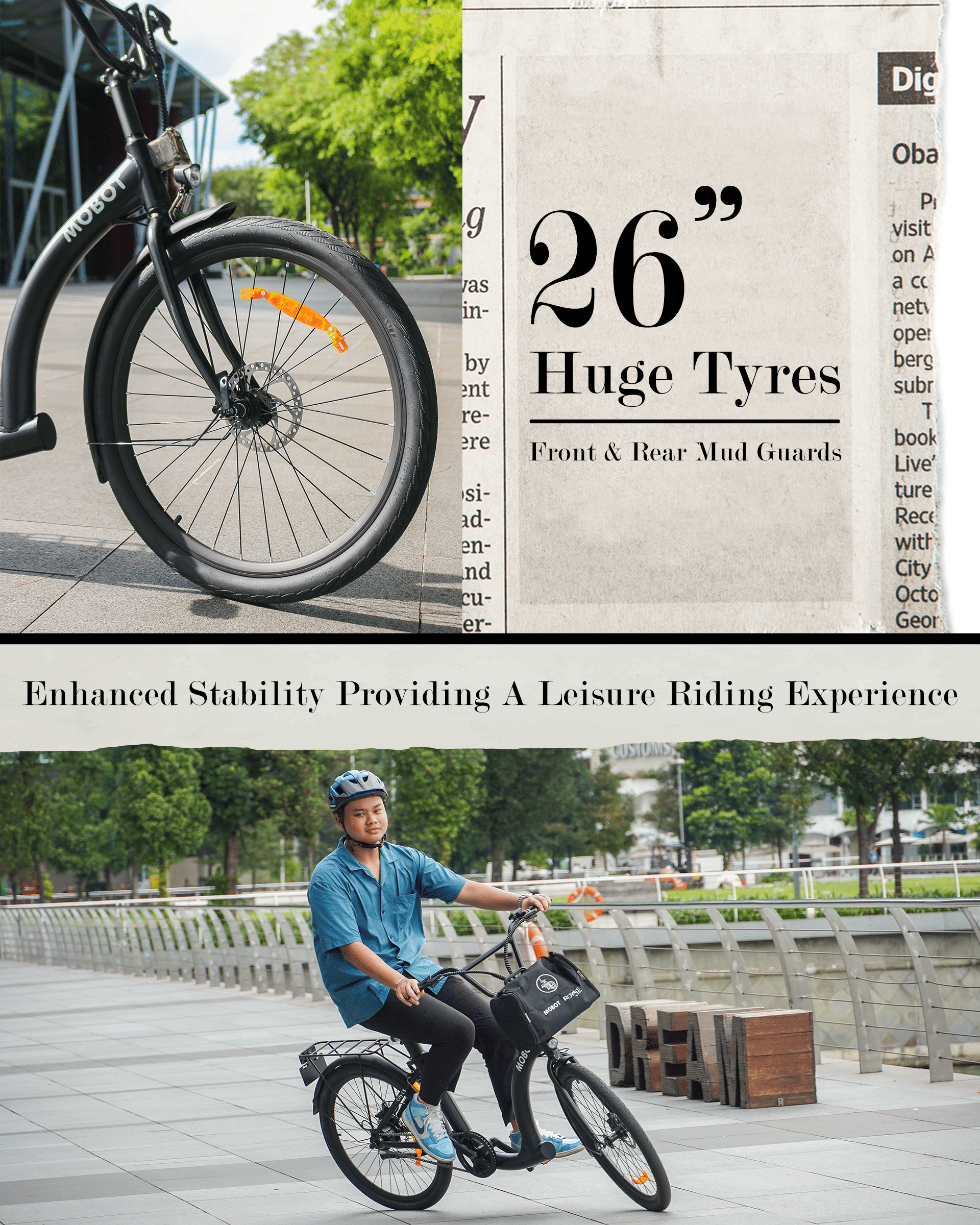 - The 26 Inch tyres provides an expanded circumference, which enhances road visibility and stability, providing a seamless and leisure riding experience