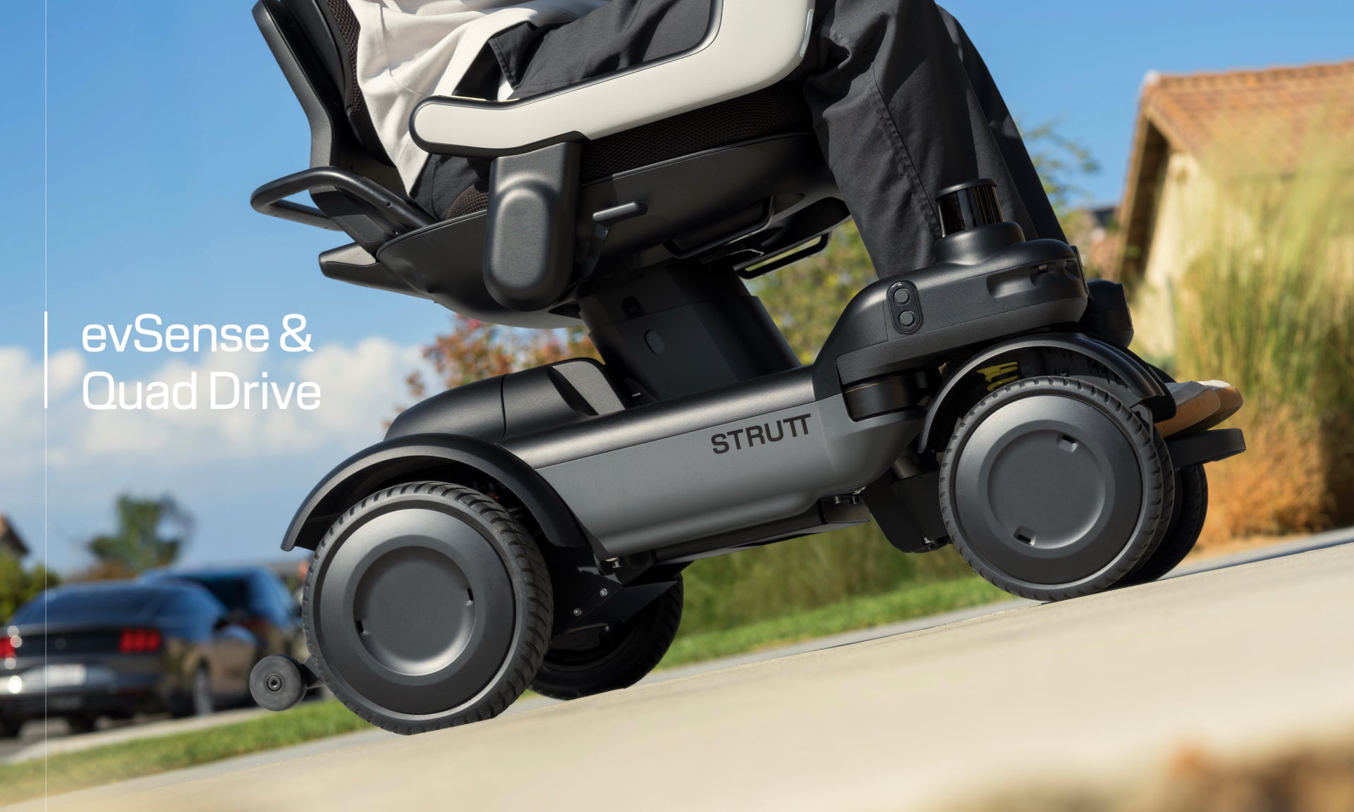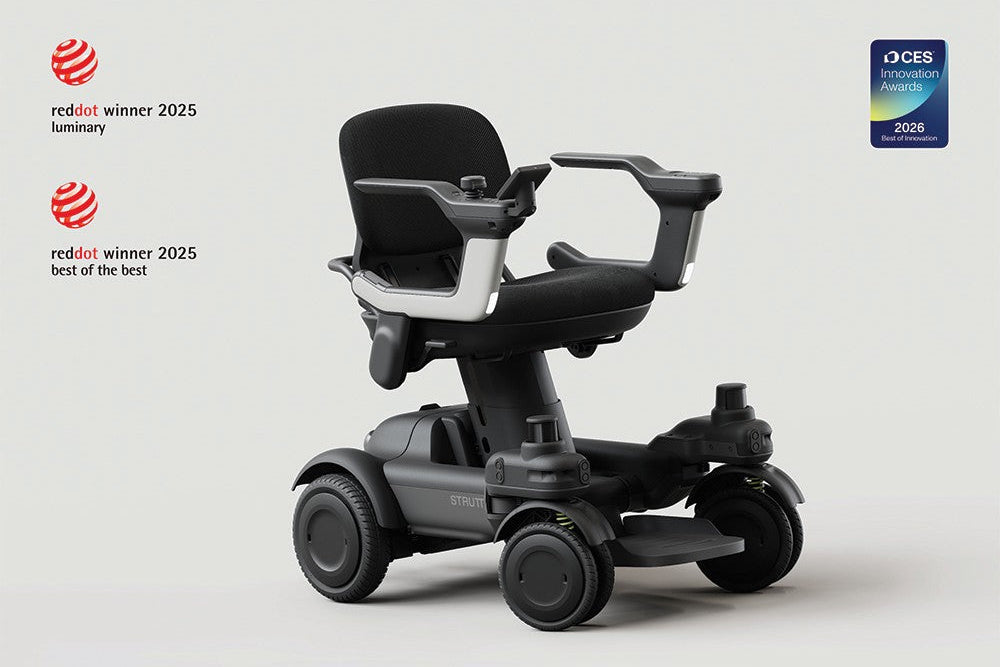 The Strutt ev¹⊂ is a next-generation smart electric wheelchair designed to enhance everyday independence. Powered by intelligent Co-Pilot technology, advanced sensing, and a quad-motor Smart-Wheel system, it helps users navigate indoor and outdoor environments with confidence, comfort, and safety. With award-winning design and human-centered engineering, the ev¹ sets a new benchmark for modern mobility.