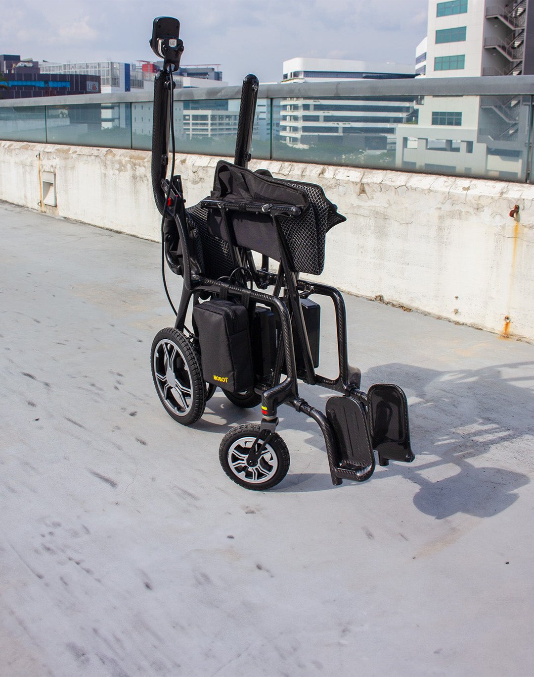 Meet the MWHEEL Carbon, our ultra-lightweight electric wheelchair weighing just 12kg¹! Crafted from expertly woven carbon fibre construction for exceptional strength, it balances portability with performance. This stunning device offers simple, user-friendly features, making it the ideal companion for users seeking a featherlight, simple and stylish travel solution.