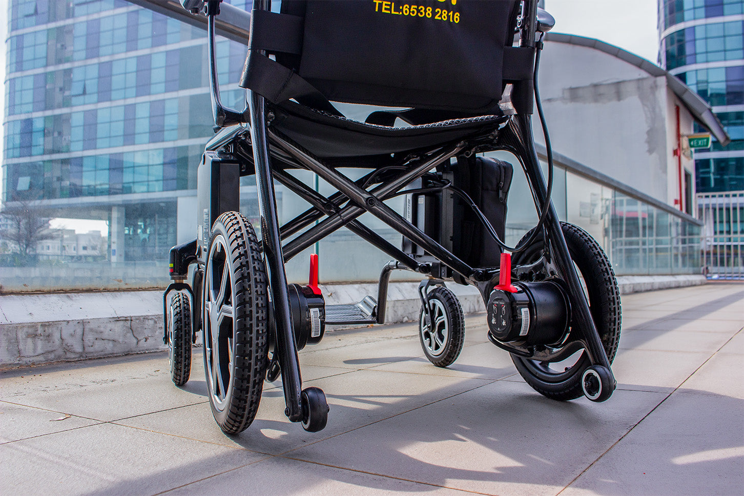 Constructed from high-quality carbon fibre with a unique pattern, it is reliable, rust-resistant and stylish, making it easy for caregivers to handle and users to control. Its sleek, compact foldable design makes it perfect for storage and travel.