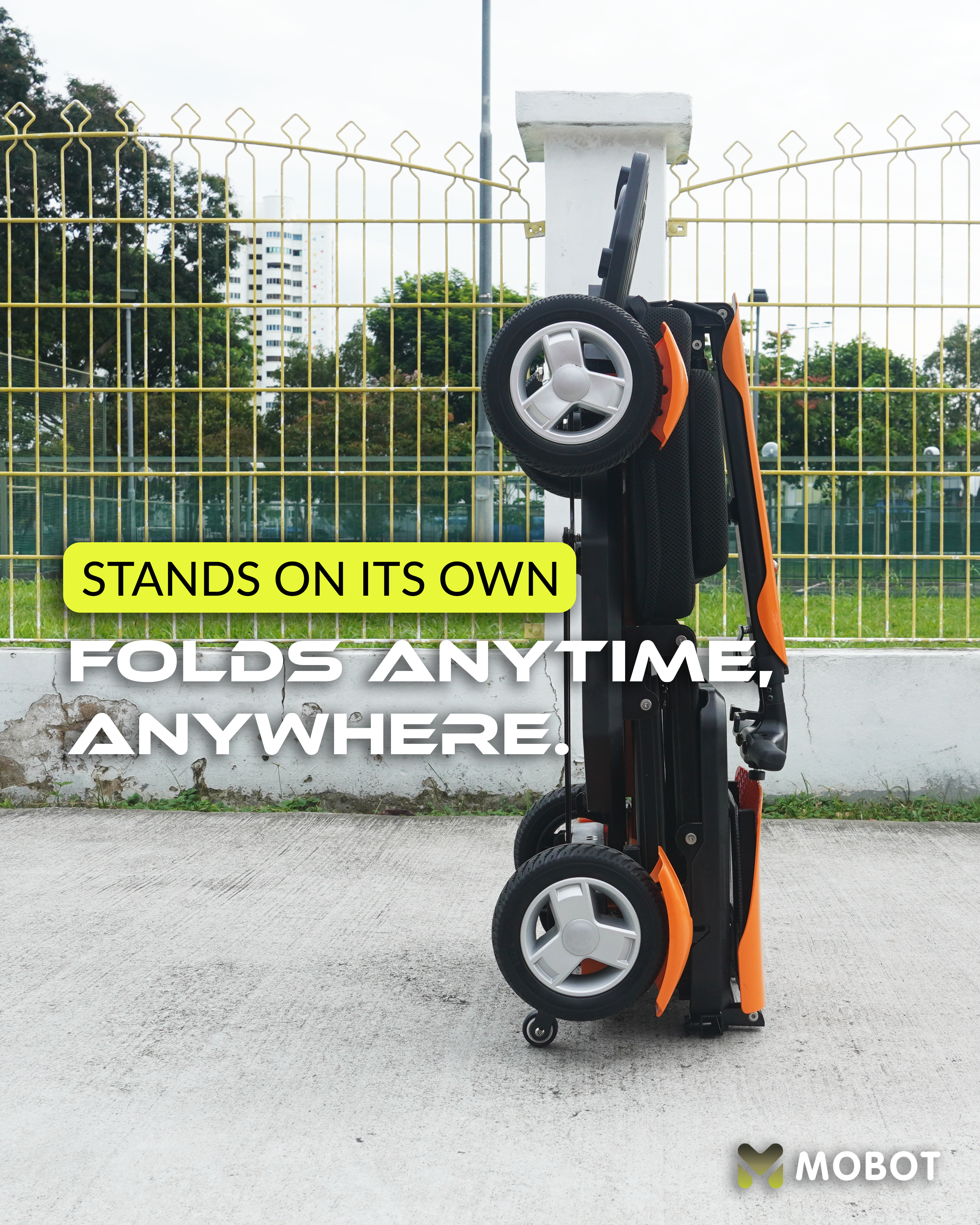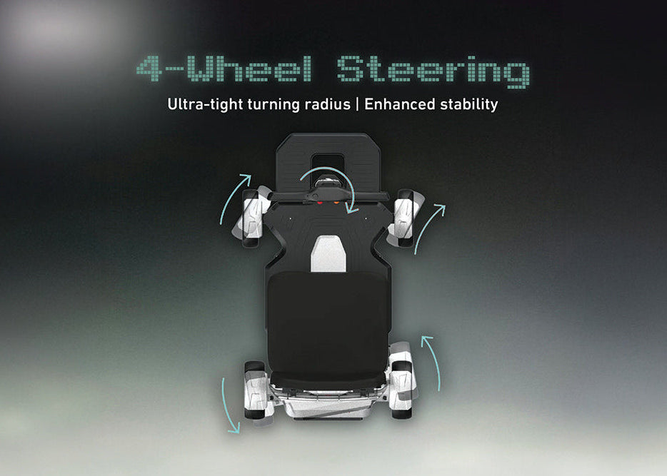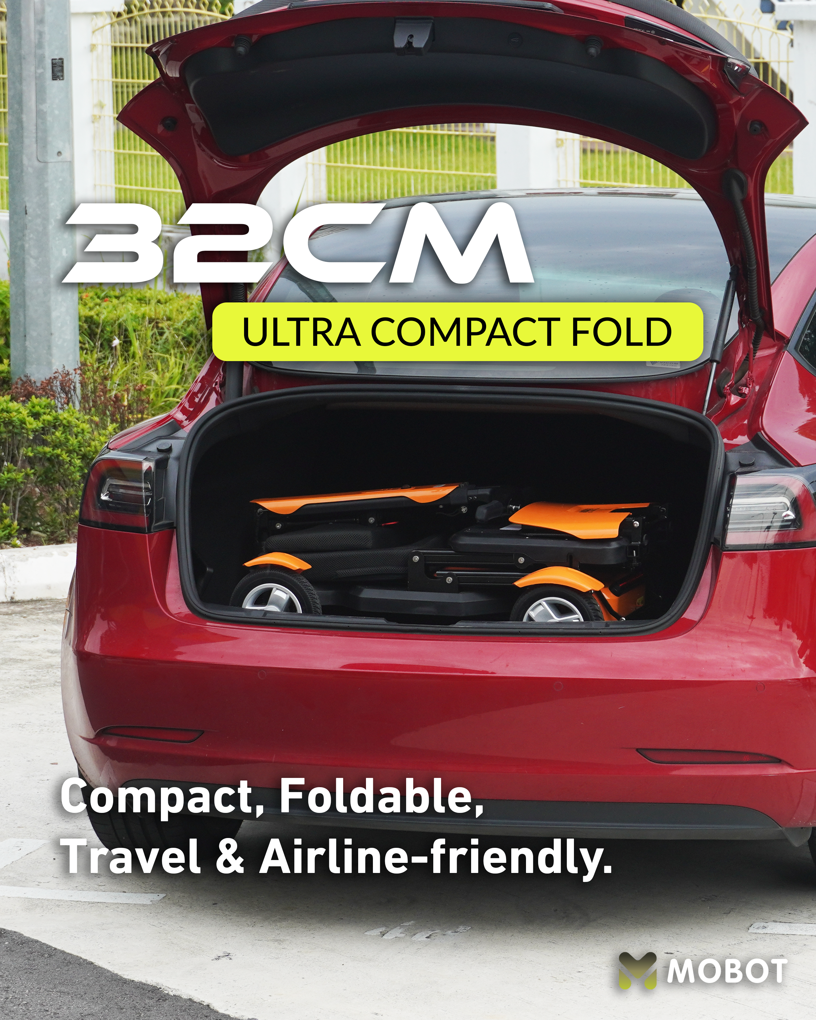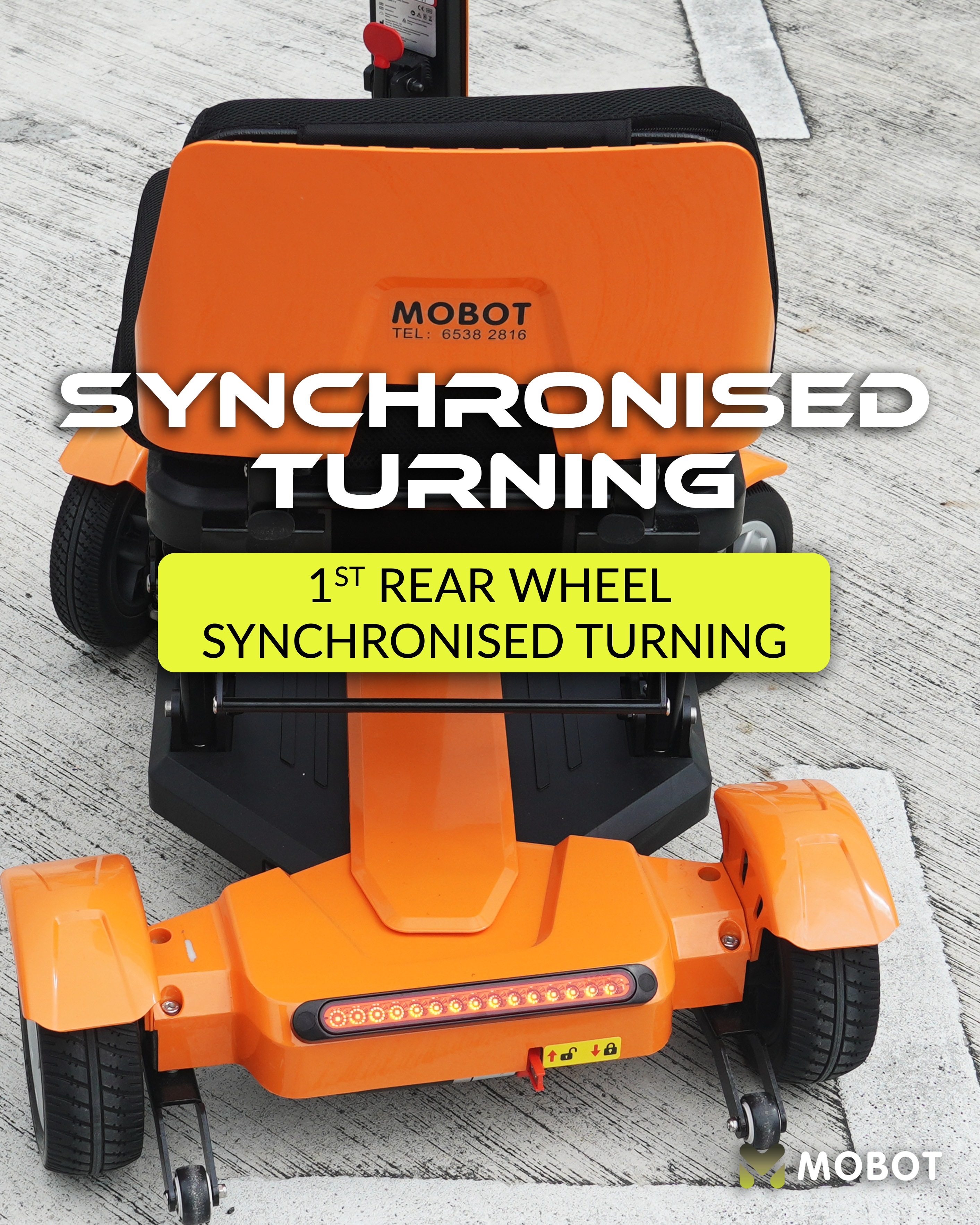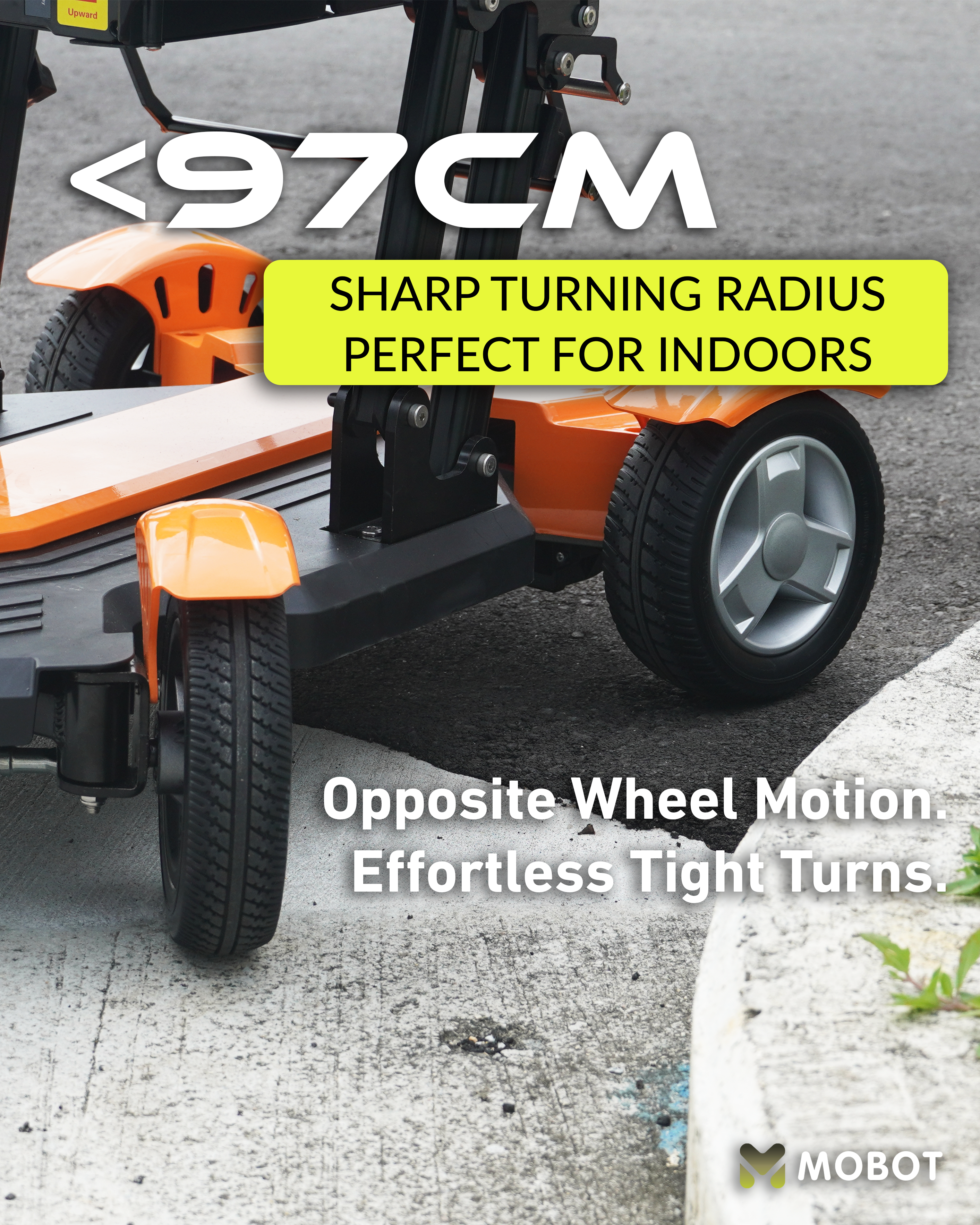 The MOBOT Nebula X is the most nimble motorised mobility scooter in the world. Equipped with 4-wheel steering functions, the front and rear wheels move in opposite directions during a turn, allowing you to navigate through any corners with ease—no three-point turns necessary for this mobility scooter! With its sleek design, foldability and airline compliance, this is the best travel companion!