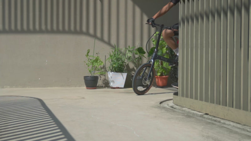 The ROYALE CX9 is a 9-speed carbon fibre foldable bike, designed for performance city cycling. Built with ROYALE's patent-pending carbon fibre process, it features a lightweight and stiff frame made from Toray T700 premium-grade carbon fibre, weighing just 8.71kg. Equipped with SHIMANO Sora derailleur, shifter, and SHIMANO MT200 hydraulic disc brakes, it offers smooth, reliable performance. The CX9 folds into a compact size, perfect for tight spaces, with a quick-release front wheel for easy transport. Its low weight, sharp responsiveness, and wide handlebar make city riding a breeze, offering an agile and enjoyable experience through traffic and corners.