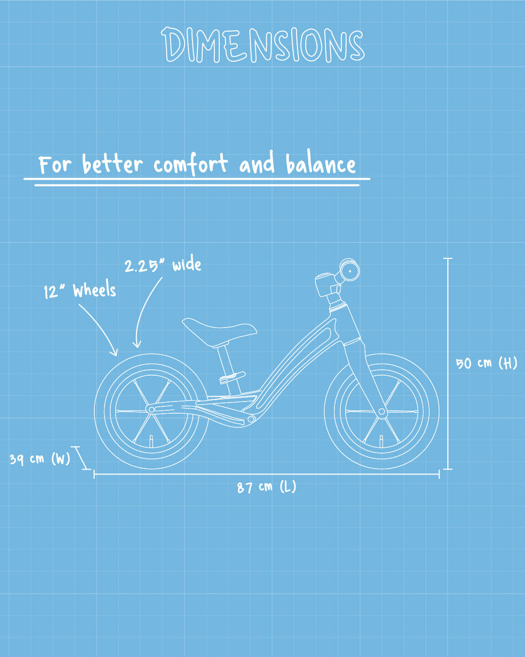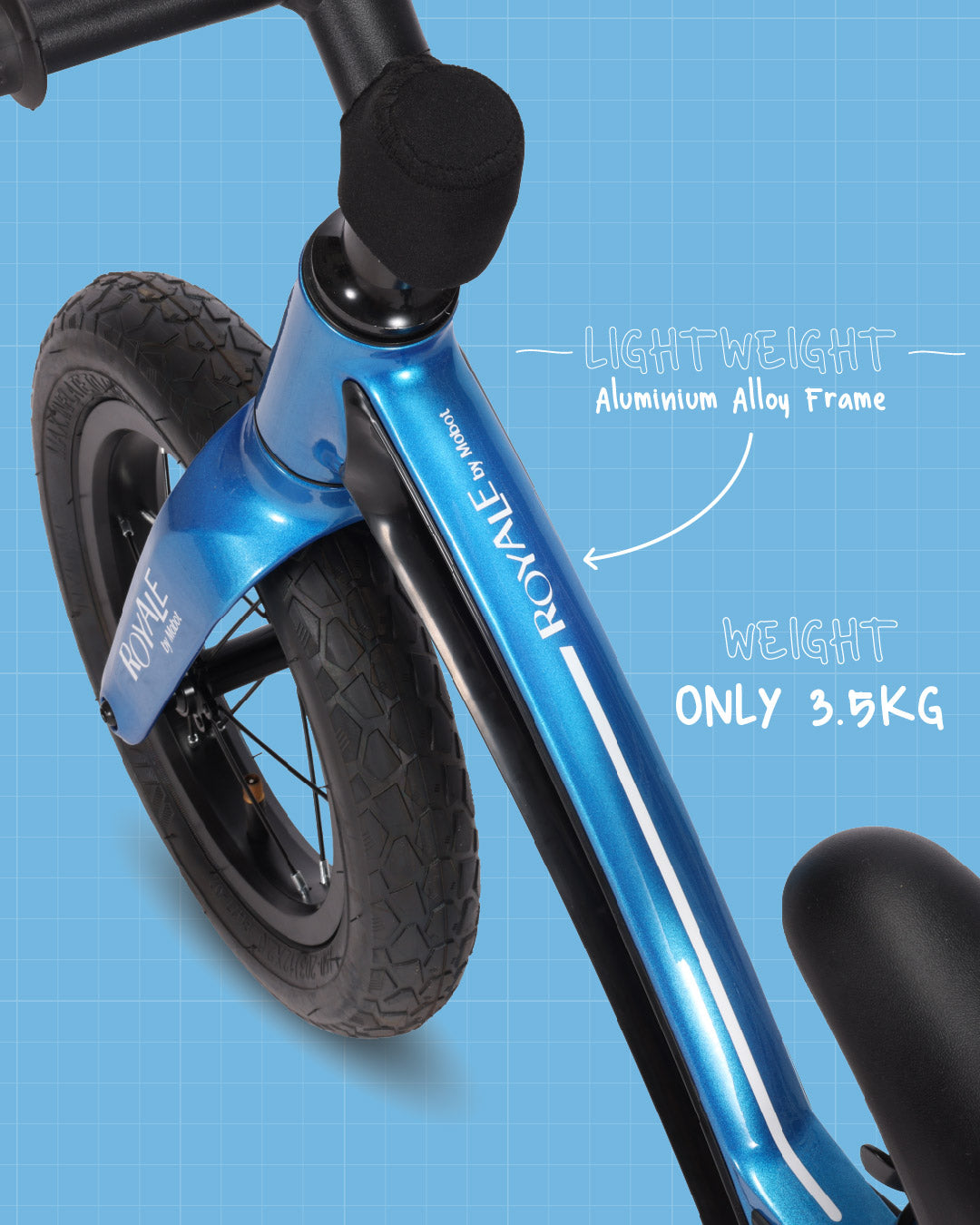 ROYALE Puggi Balance bike uses a lightweight aluminium alloy frame, allowing for easier use by kids.